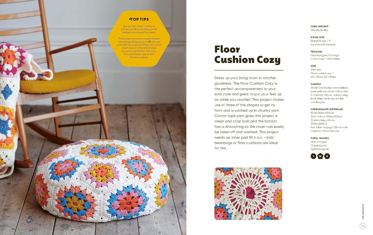 Learn how to crochet simple shape motifs that you can mix and match to create 15 amazing crochet projects, including garments, homewares and accessories.